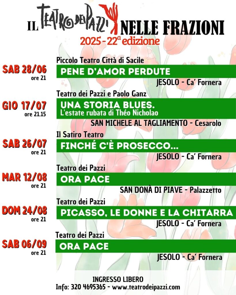 Rassegne Estive Attive TEATRO NELLE FRAZIONI CARNEVALE D’ESTATE RETEVENTI Archivio Rassegne PORTO DI CORTELLAZZO B.A.M. GREEN BEACH DALL’ALBA AL TRAMONTO I GENI DEL ‘900 TEATRO IN SPIAGGIA RIPARTIAMO DALLA CULTURA TREVISO DA FAVOLA! IN VIAGGIO CON HEMINGWAY RACCONTI DI MEZZANOTTE DI SCENA IN VILLA TEATRO DEL MARE
